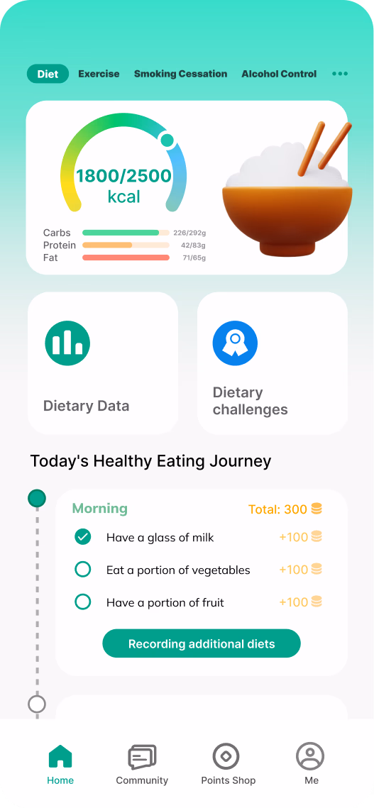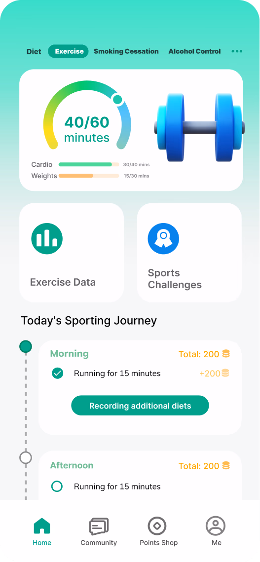 Non-communicable diseases (NCDs) are one of the leading causes of death worldwide, and they are closely linked to people's lifestyles. This project aims to design a healthy lifestyle app covering four key areas: diet, physical activity, smoking cessation, and alcohol control. By incorporating gamification principles, the app is designed to increase user engagement.