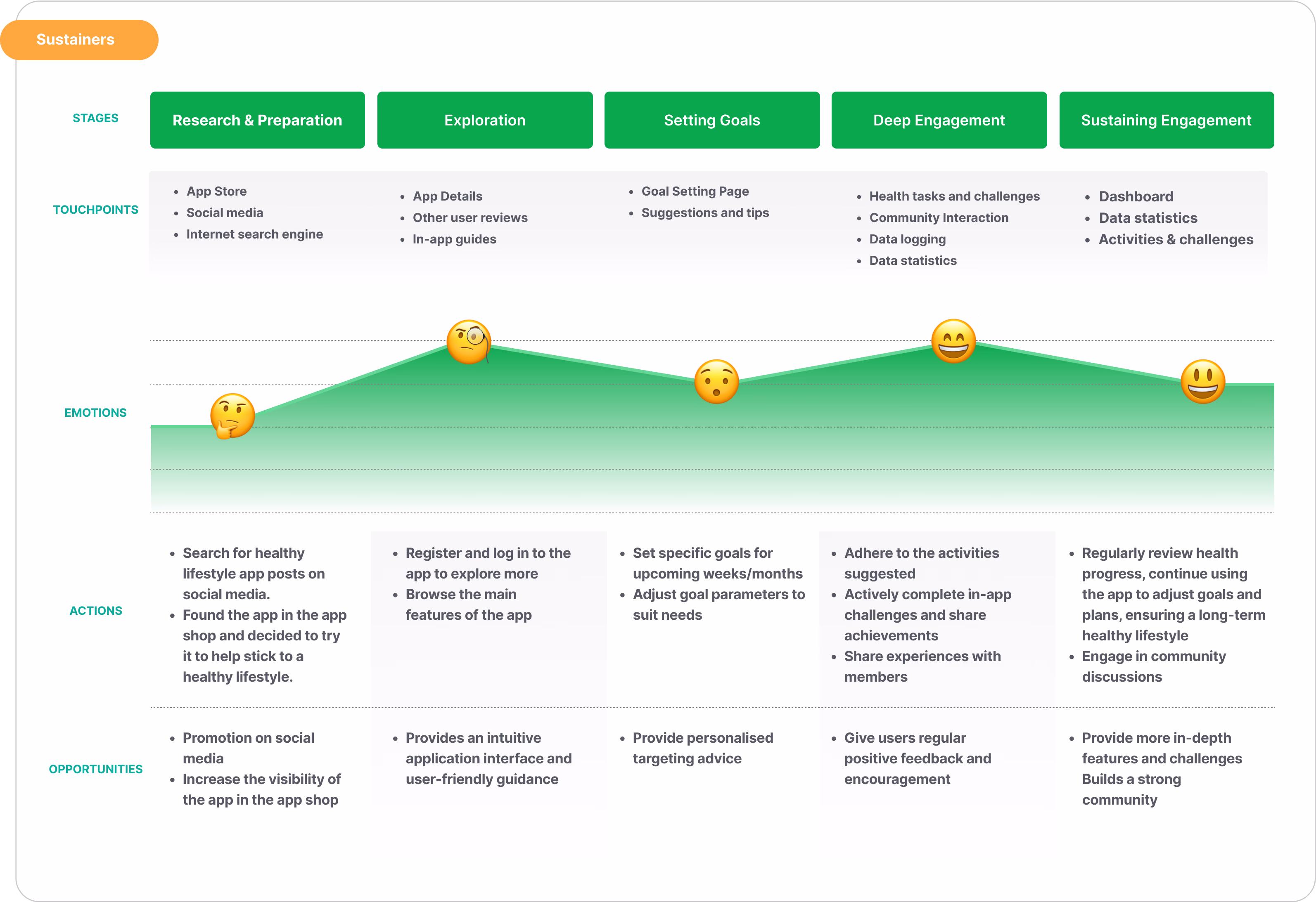 Customer Journey Mapping (CJM) provides a holistic view of the user experience from the first contact to the long term. By visualising the various touchpoints users encounter, CJM highlights areas of delight, apathy and friction. This approach ensures that designers and stakeholders can identify opportunities to enhance and address pain points.
