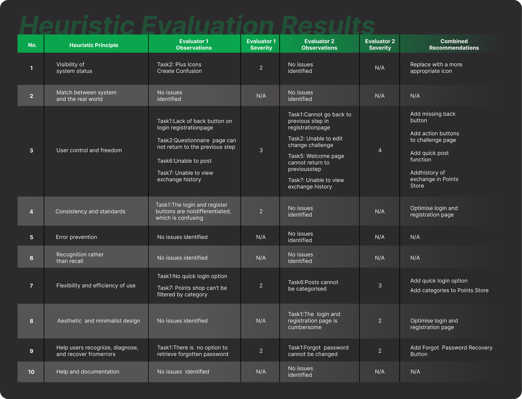 At this stage we invited two evaluators with professional backgrounds in service design to conduct a heuristic evaluation of the low-fidelity prototype, which is a cost-effective way of identifying usability issues in the user interface at an early stage so that they can be addressed during the iterative process. This is an expert evaluation method where one or more evaluators independently examine the user interface and identify problems based on recognised usability principles.