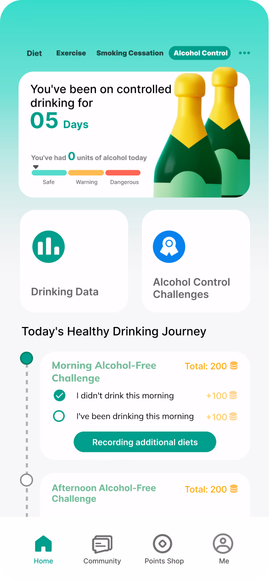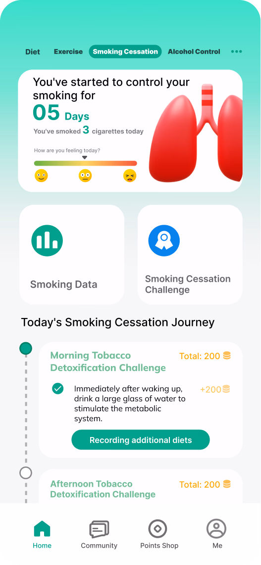 Non-communicable diseases (NCDs) are one of the leading causes of death worldwide, and they are closely linked to people's lifestyles. This project aims to design a healthy lifestyle app covering four key areas: diet, physical activity, smoking cessation, and alcohol control. By incorporating gamification principles, the app is designed to increase user engagement.