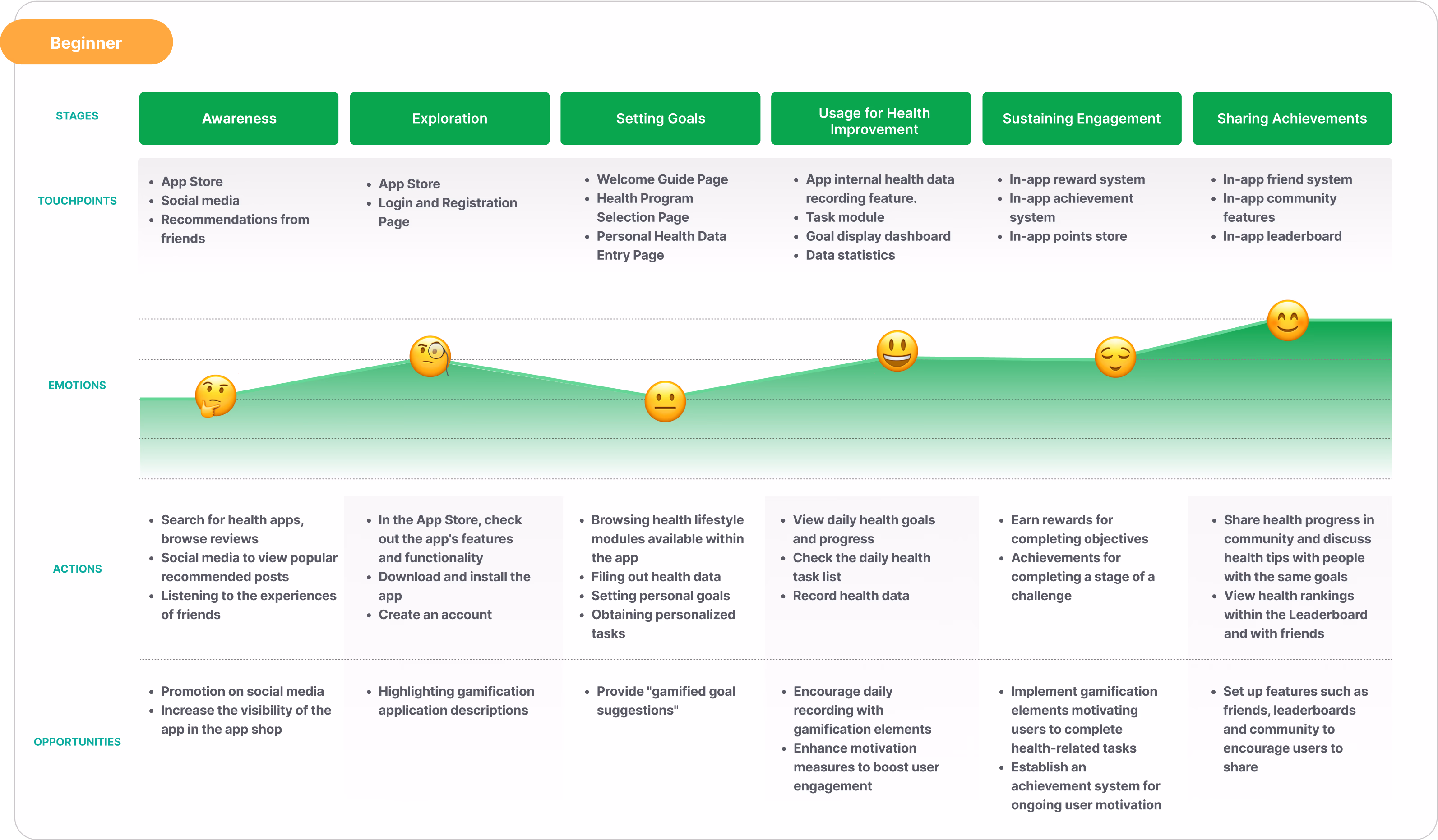They were beginners, and healthy lifestyle maintainers. After understanding the main characteristics of these two user groups, personas were designed for each type of user.